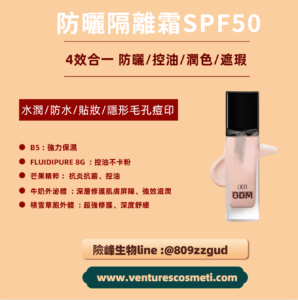 隨著日益嚴重的紫外線暴露,防曬已經成為日常護膚不可或缺的一步。而在市場上,防曬產品種類繁多,但要找到一款既能提供高效防曬,又能兼顧控油、滋潤、保濕,甚至具備遮瑕效果的防曬隔離霜。險峰打造一款全方位呵護肌膚的潤色防曬隔離霜,它不僅具備物理防曬係數,還能提供深層保濕、控油、遮瑕等多重效果,讓您在日常護膚中輕鬆擁有無瑕肌膚。